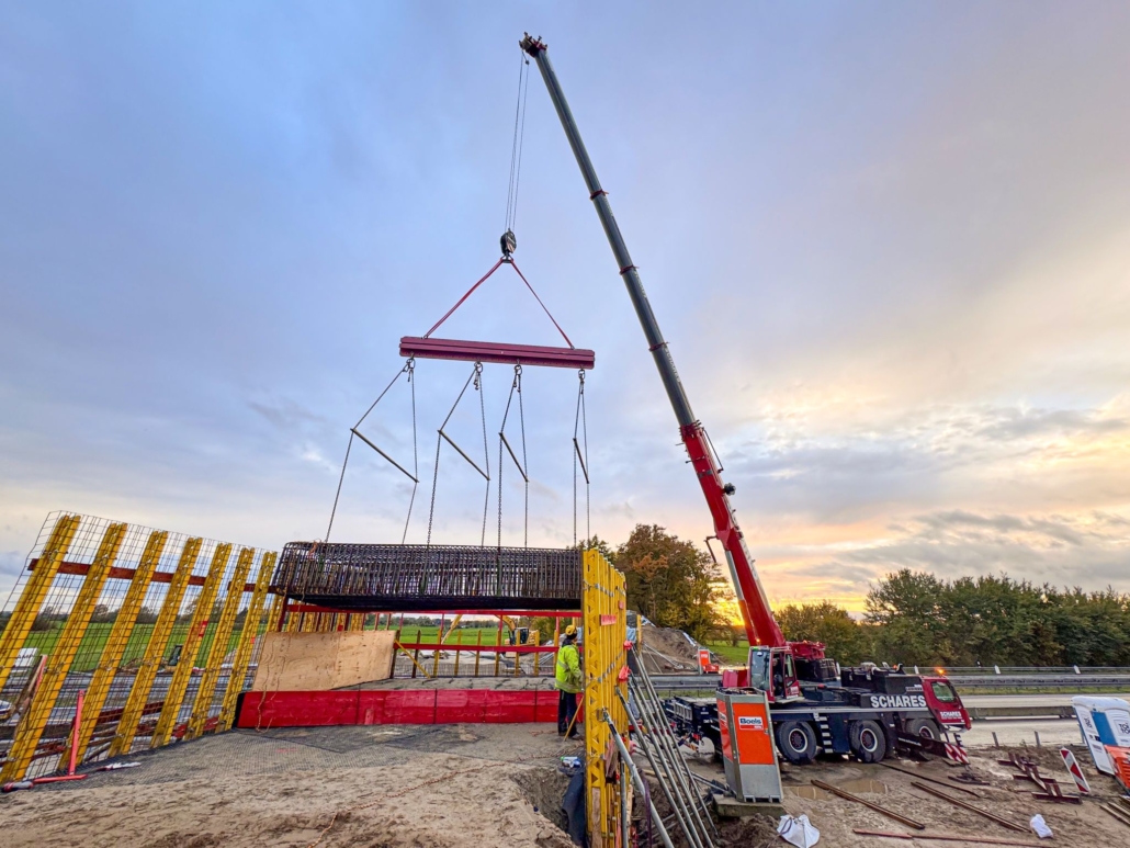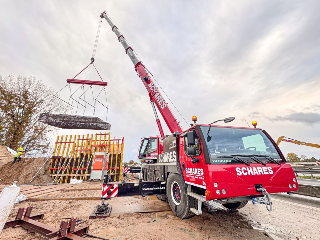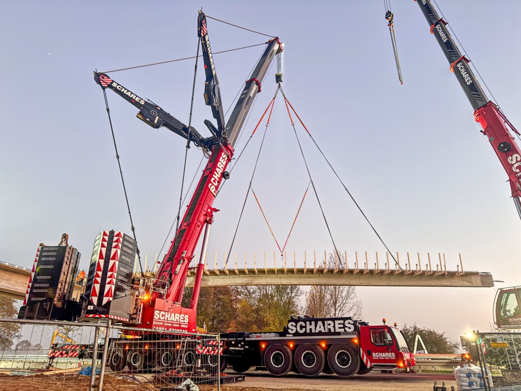 Im November stand für unser Team von Autokrane Schares ein besonders anspruchsvoller Einsatz auf dem Programm. Für die HEITKAMP Unternehmensgruppe durften wir die Fertigteilträger für die ersten beiden von insgesamt fünf geplanten Schnellbaubrücken auf der A3 bei Emmerich am Rhein einheben – ein Projekt, das höchste Präzision, starke Krantechnik und ein perfekt eingespieltes Team erforderte.